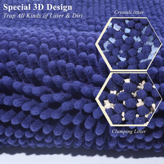 • Cat Litter Mat, Litter Trapping Mat, 31"× 20" Cat Kitty Litter Rug with Waterproof Back, Super Soft for Cat'S Paws, Machine Washable, Navy Blue